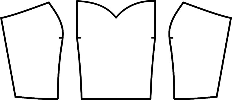 Y finalmente, después de algunos ajustes, así quedaría el patrón del escote palabra de honor con un centro delantero y dos costadillos.